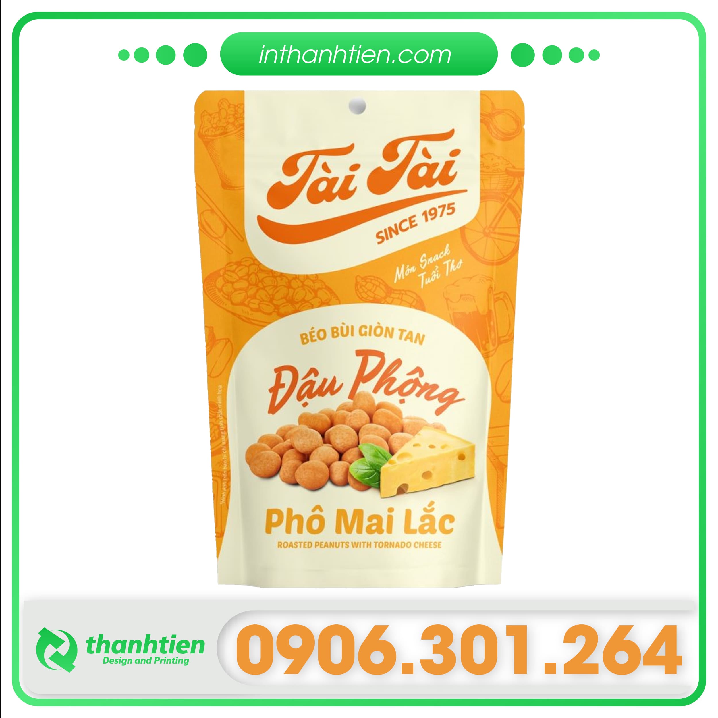Công ty In Thành Tiến là xưởng chuyên sản xuất và in ấn các loại bao bì nhựa, màng ghép phức hợp,… phù hợp cho đậu phộng rang, đậu phộng tẩm vị, và các sản phẩm nông sản khô khác.